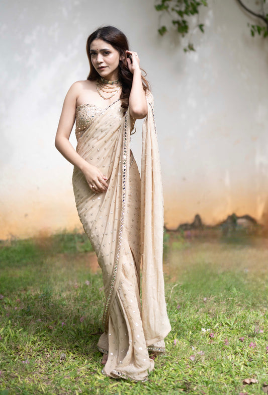 Banno Tera Swagger -Jaal Embroidery Pre-Pleated Shimmer Chiffon Saree