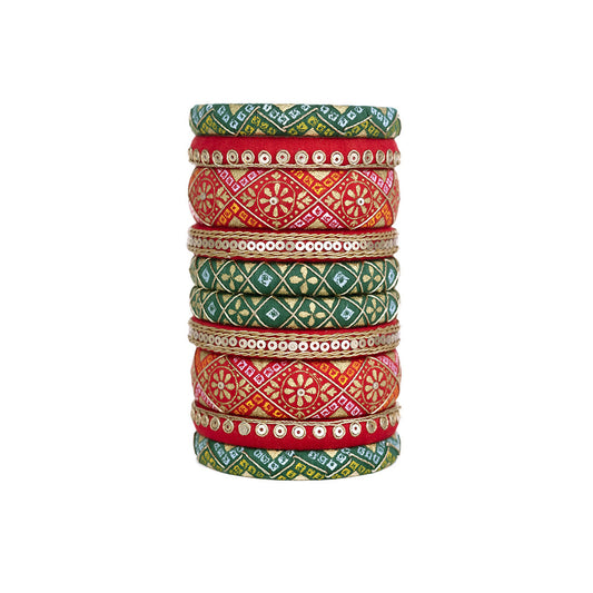 Nishka Red & Green Bandhani Pattern Bangle Set