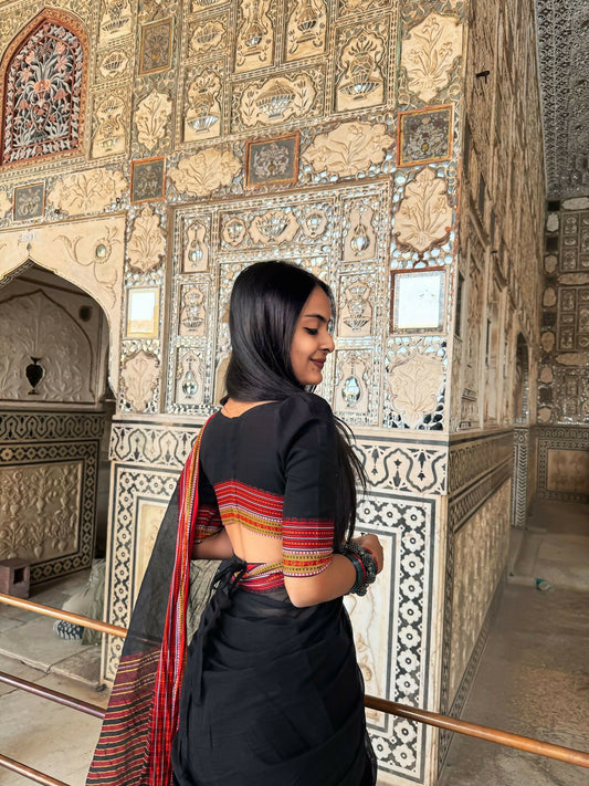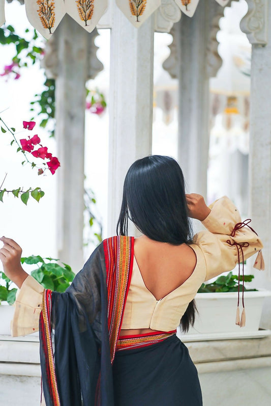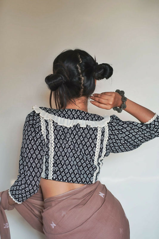 Black Bougainville Block Print Cotton Blouse