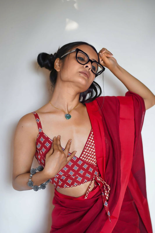 Rust Flower Block Print Cotton Blouse