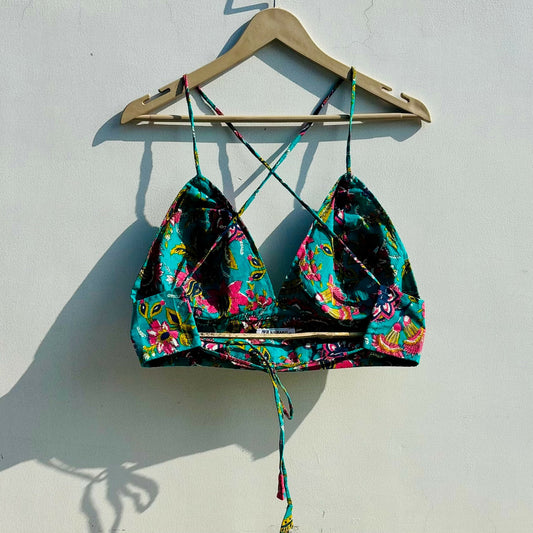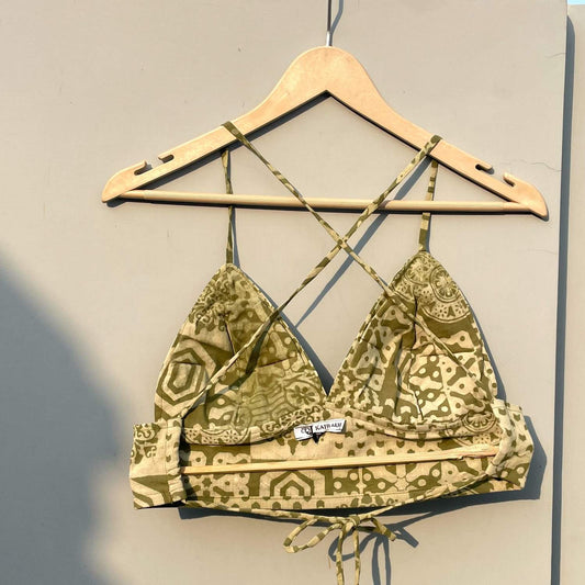 Rama Green Jaal Cotton Bralette with Removable Pad