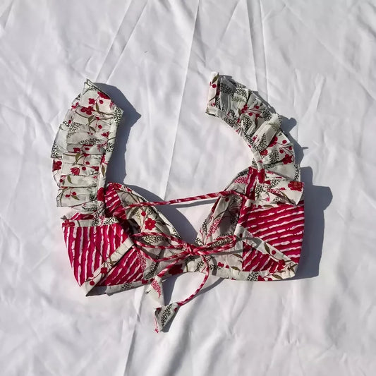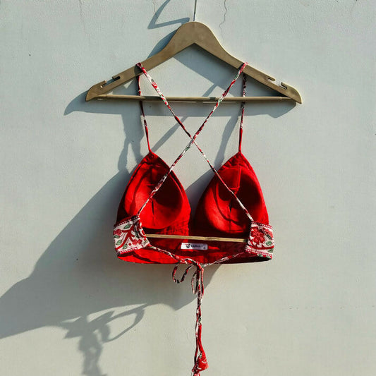 Red Mughal Cotton Removable Pad Bralette