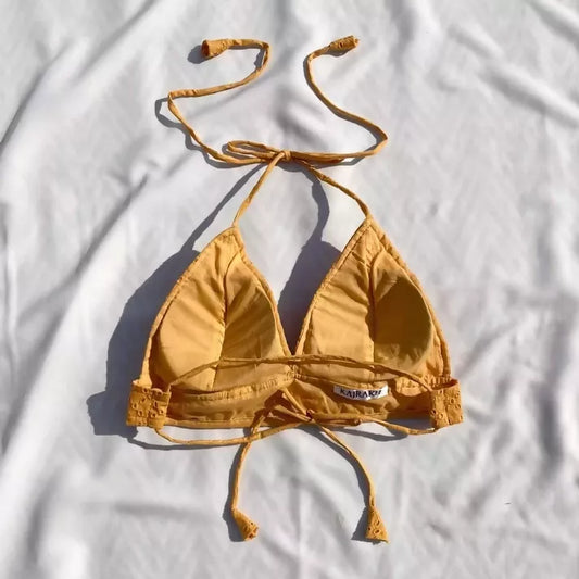 Yellow Chikan Cotton Padded Bralette