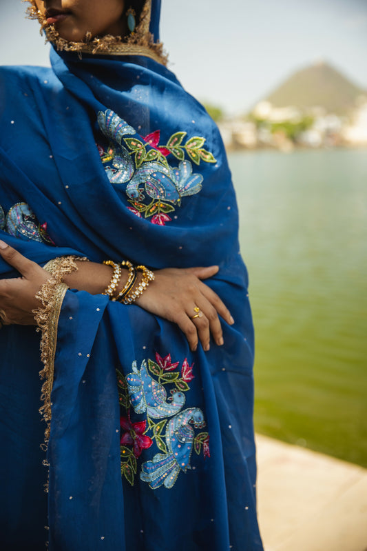 Rati Handpainted Organza Palazzo Set