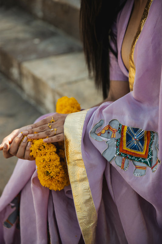 Meera - Royal Elephant Hand painted Saree