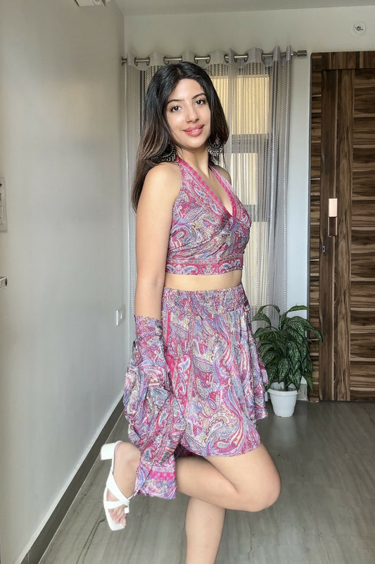 Kimono, Halter Neck Top and Skort (3 pc Set) - Pink