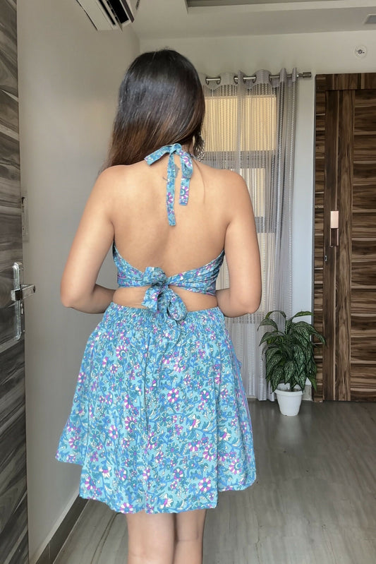 Kimono, Halter Neck Top and Skort (3 pc Set) - Light Blue