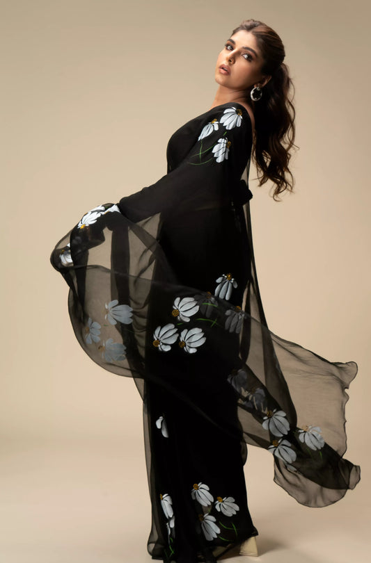 Half-Daisies Saree in Black