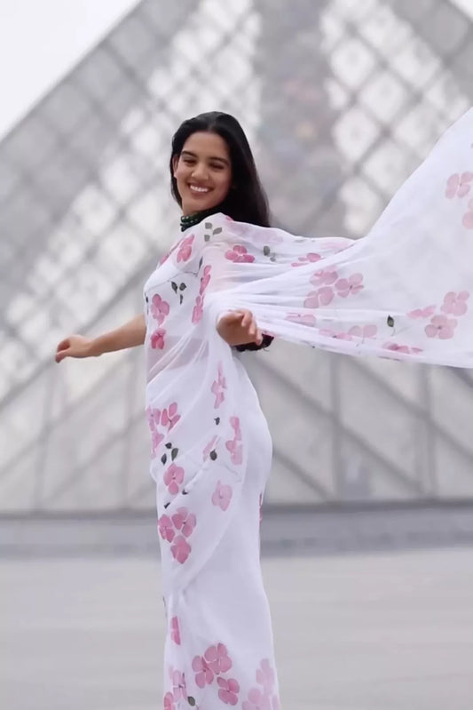 Dogwood Chiffon Saree In White