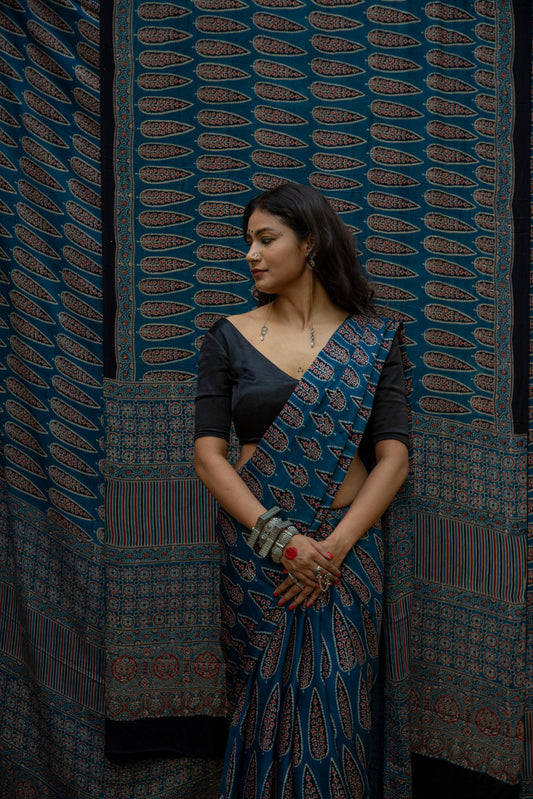 Shweta Pichwai Handblock Printed Silk Saree