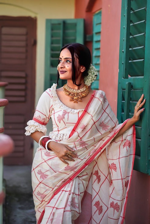 Lady in Jalgaon Handwoven Cotton Jamdani Saree