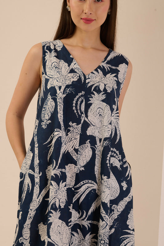 Peacock Garden Blue Flared Dress