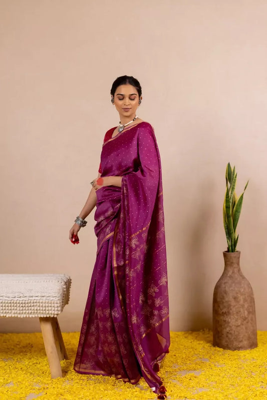 Twilight Bloom Chanderi Saree