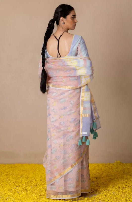 Blush Jellyfish Elegance - Mul Cotton Saree