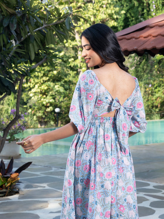 Daisy Handblock Printed Pleated Dress