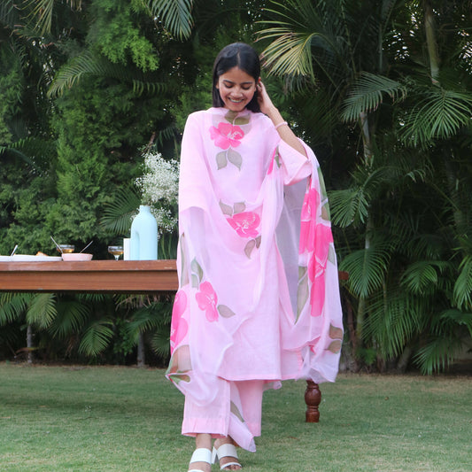Hibiscus Suit Set with Hand-painted Dupatta