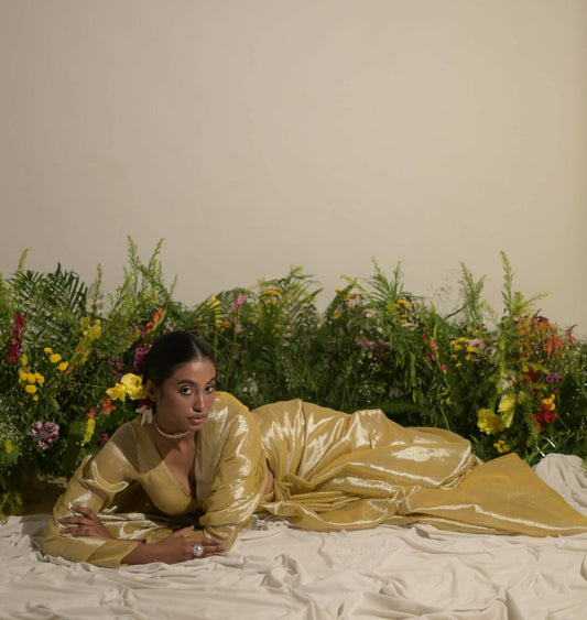 Buttercup Spice Neon Olive Handloom Tissue SareeVendor:Huts and LoomsSale price From ₹3,41510% OFFRegular priceUnit price per₹3,795Sale
