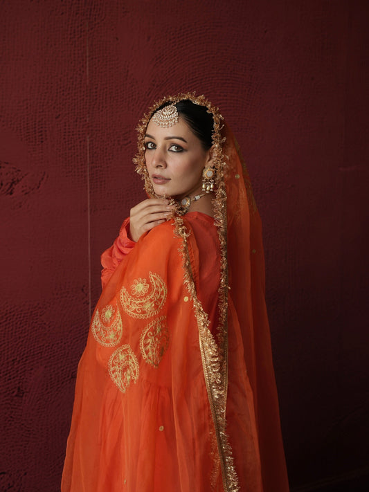 Chaand Orange Silk Anarkali with Dhoti Bottom
