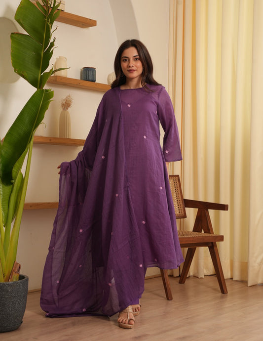 Chand Hand-dyed Purple Silk Aari Anarkali Set