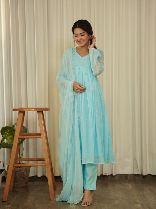 Shaira Chiffon Anarkali with Embroidered Lace Work Dupatta