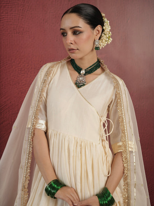 Chaand Off White Chanderi Angrakha Zariwork Suit Set