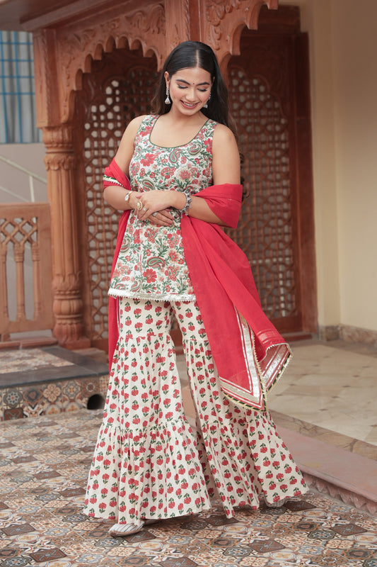 Rangrasiya Handblock Cotton Sharara SetVendor:SajiloSale price ₹4,37940% OFFRegular priceUnit price per₹7,299Sale