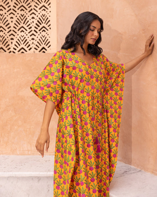 Woof Hand Block Printed Cotton Maxi Kaftan