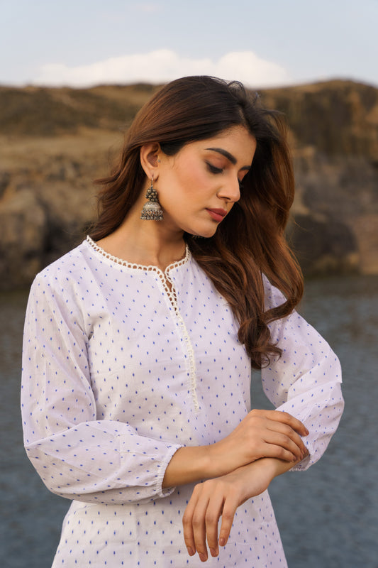 Noor Off-white Swiss Dot Cotton Co-ord Set