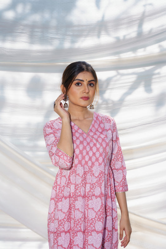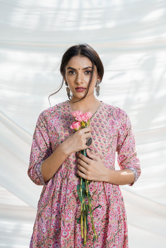 Nazakat Pink Cotton Block Print Kurta Set