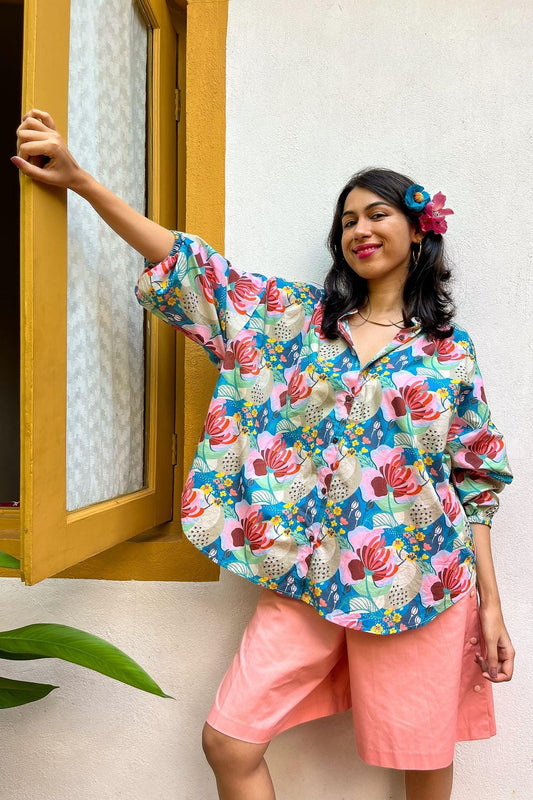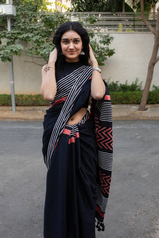 Spring Garden - Dabu Hand Block Print Mulmul Cotton Bagru Saree