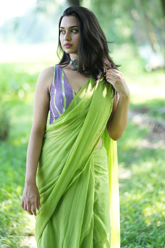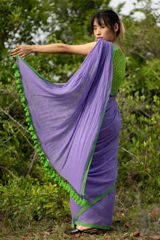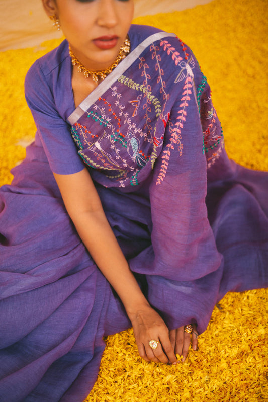 Charu - Purple Dabu Hand Block Print Chanderi Silk Saree