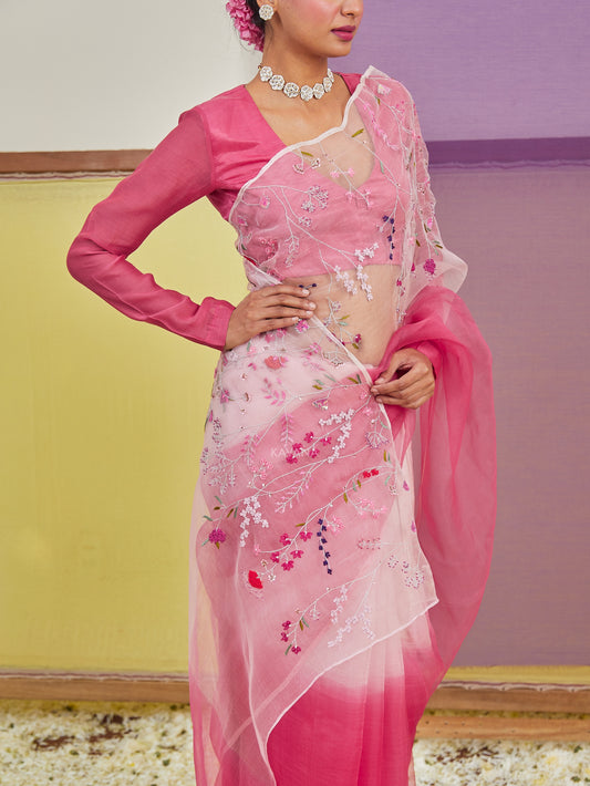 Gulkand Handblock Print Natural Dyed Mulmul Cotton Saree