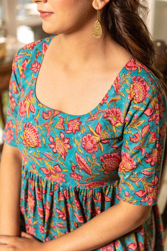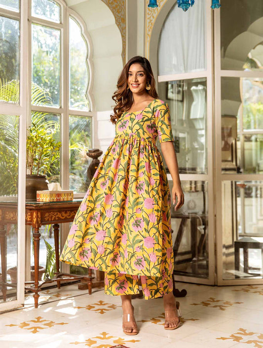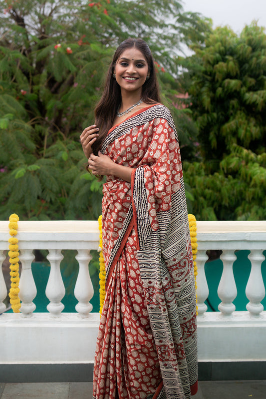 Paisley Dawn - Hand Block Print Mulmul Cotton Bagru Saree