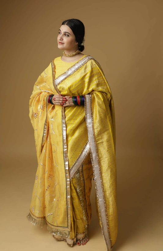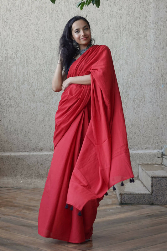 Hand Dyed Tasseled Mulmul Cotton Saree