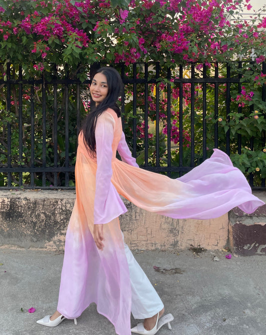 Pink and Peach Shibori Tie Dye Splash Kurta
