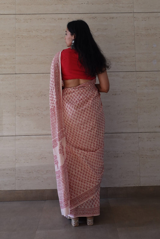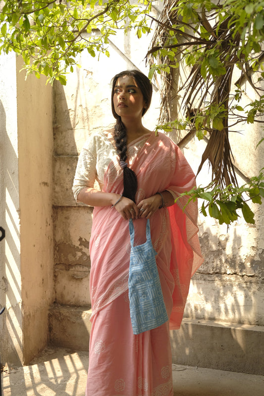 Peach Rose Handblocked Saree