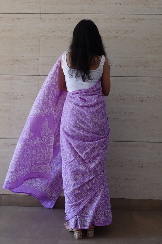 Lavender Love Letter - Handblock Print Natural Dyed - Mulmul Cotton Saree