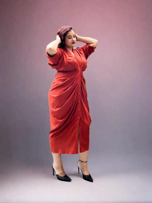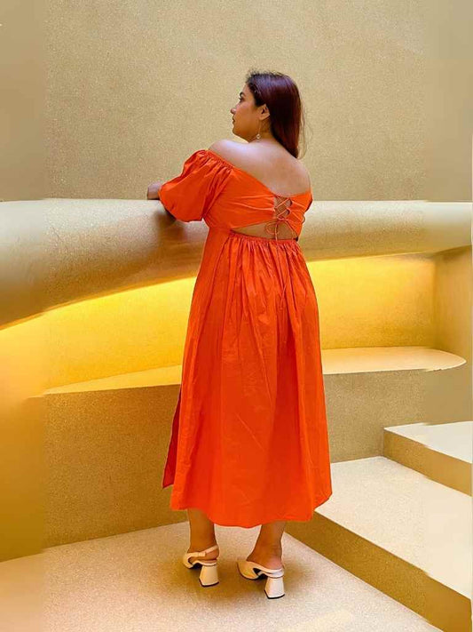 Cinnamon Cotton Puff Sleeves Maxi Dress