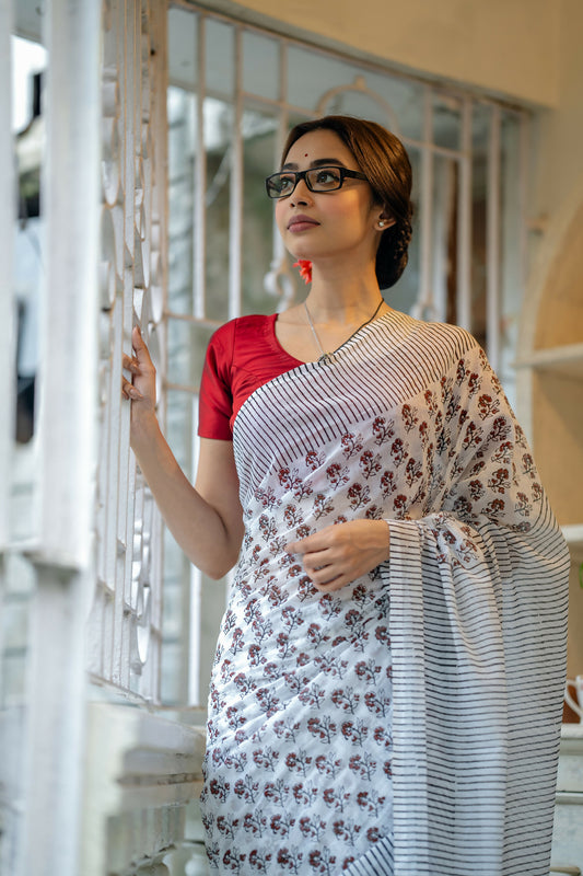 Abar Bochor Kuri Pore - Floral Butti Handwoven Saree