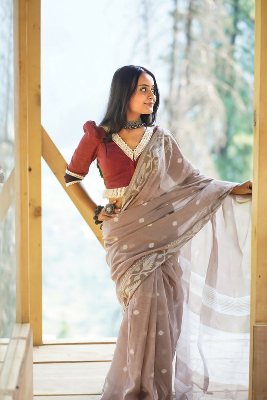 Almond Essence Beige Cotton Saree