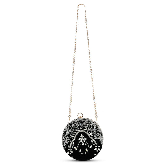 Midnight Opulence :Black Silver Round Clutch