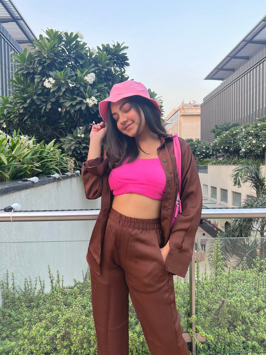 Loungewear Dark Brown Satin Coord Set