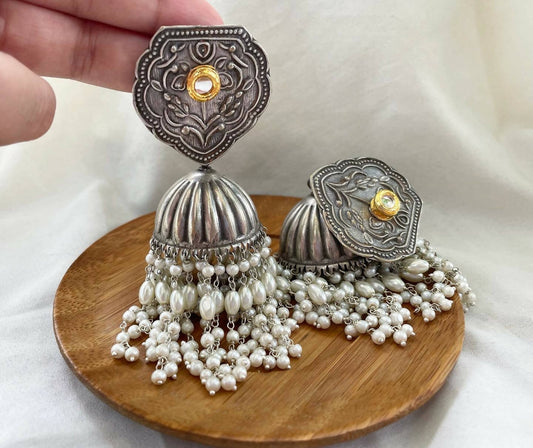 Oxidized Pearl Kuhu Jhumkas / Jhumki Earrings