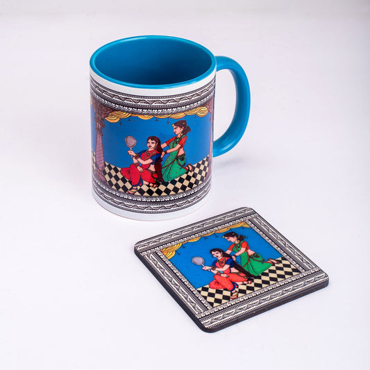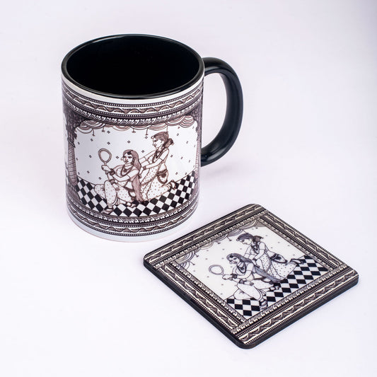 Shringaar Pattachitra Mug with Coaster - Yellow