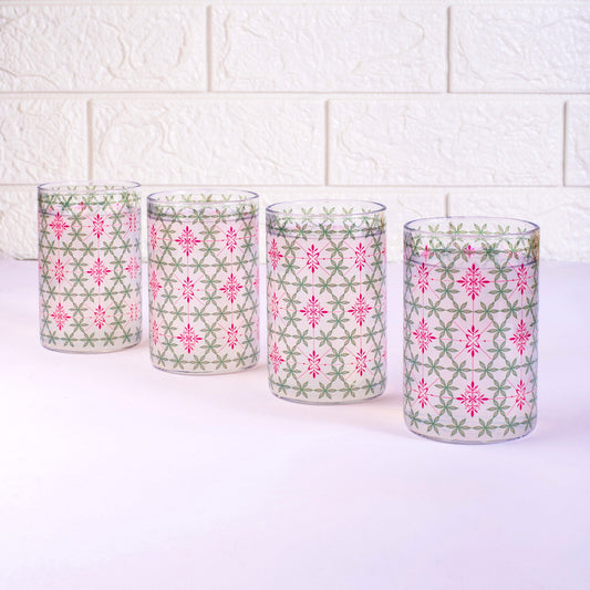 Floral Jali Print Glass Tumblers