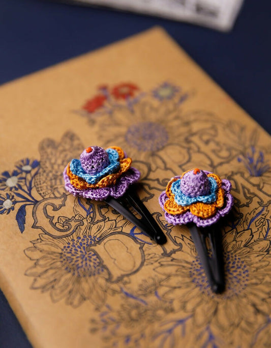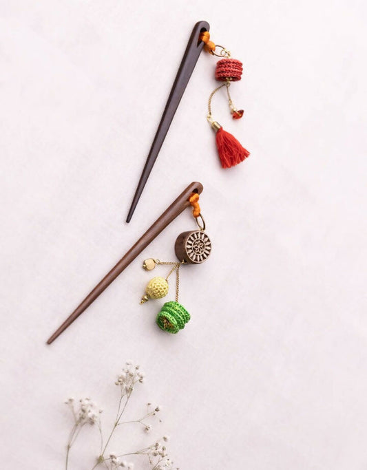 Multicoloured Crochet & Block Hair Sticks (Pair)