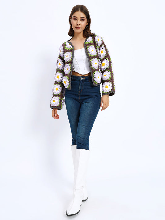 Black Granny-Square With Guth Sleeve Crochet Cardigan