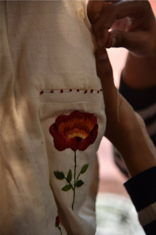 Hand-embroidered Rose Khadi Jacket