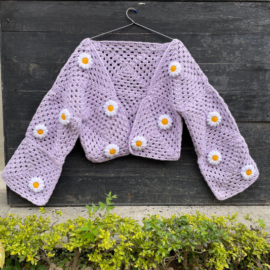 Blue Daisy Crochet Cardigan