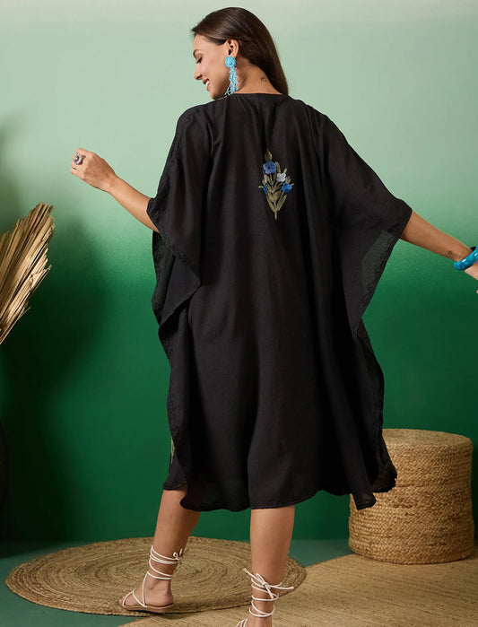 Charcoal Black Kashmiri Summer Short Kaftan